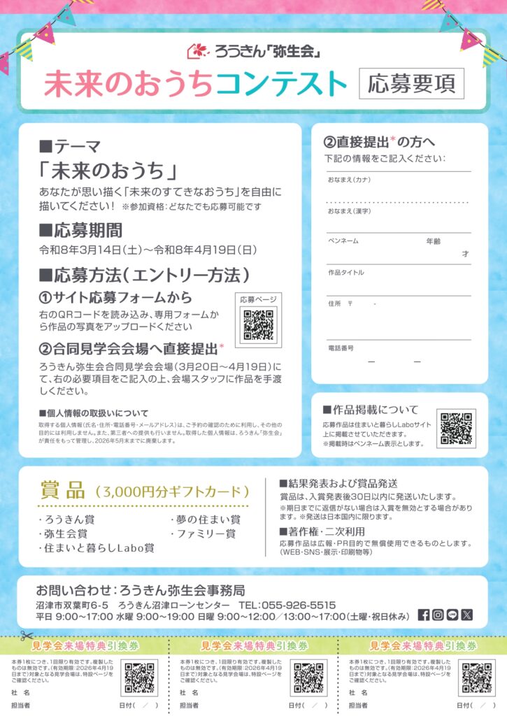 取得した個人情報は、ろうきん「弥生会」が責任をもって管理し、2026年5月末までに適切に廃棄します。